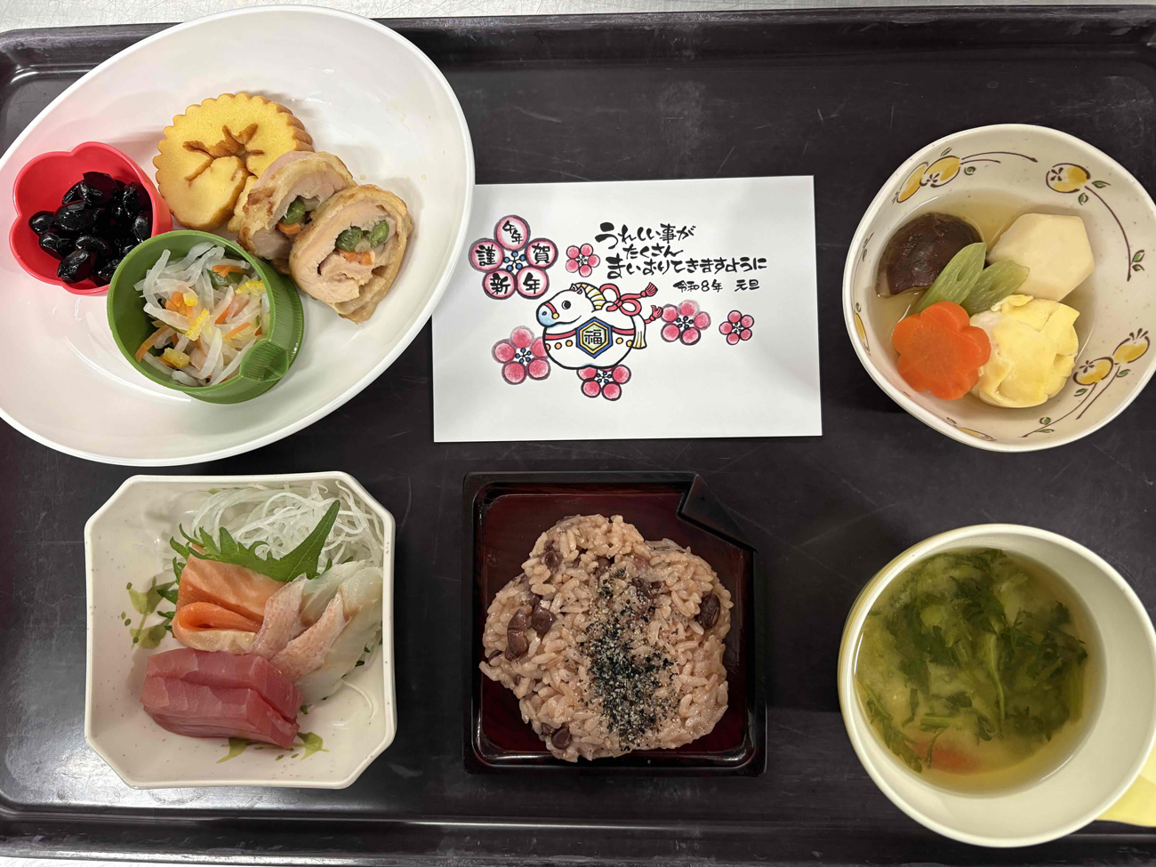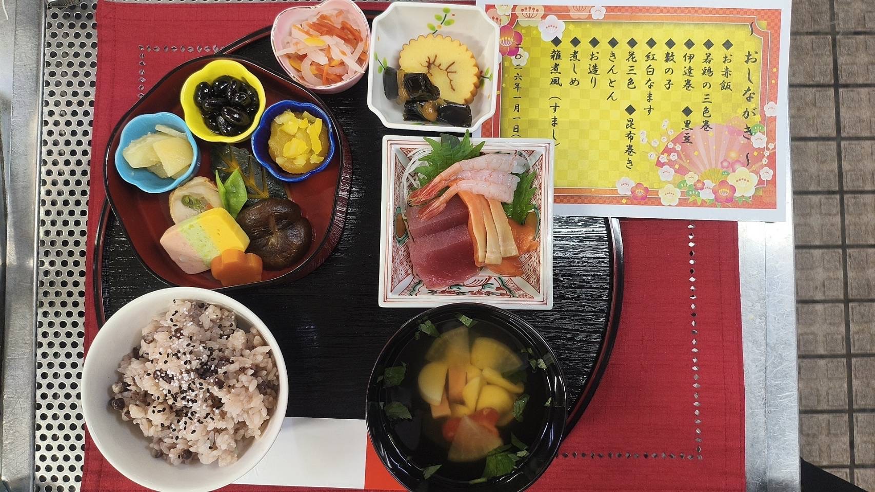 御節ならではの華やかさを大切にしながら、ご利用者様に新年の特別感を楽しんでいただけるお食事となっておりましたら幸いです。